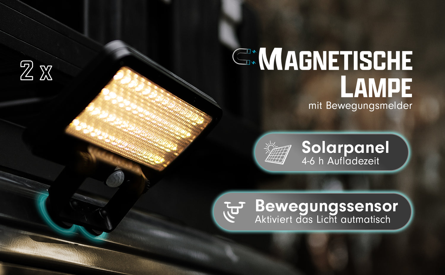 2x LED Solar Lampe mit Magnethalterung und Bewegungsmelder