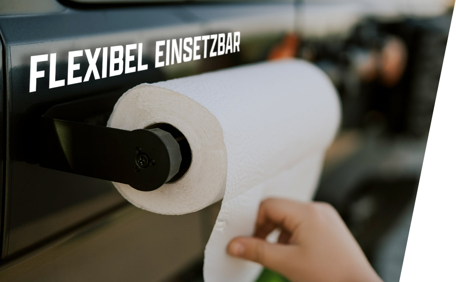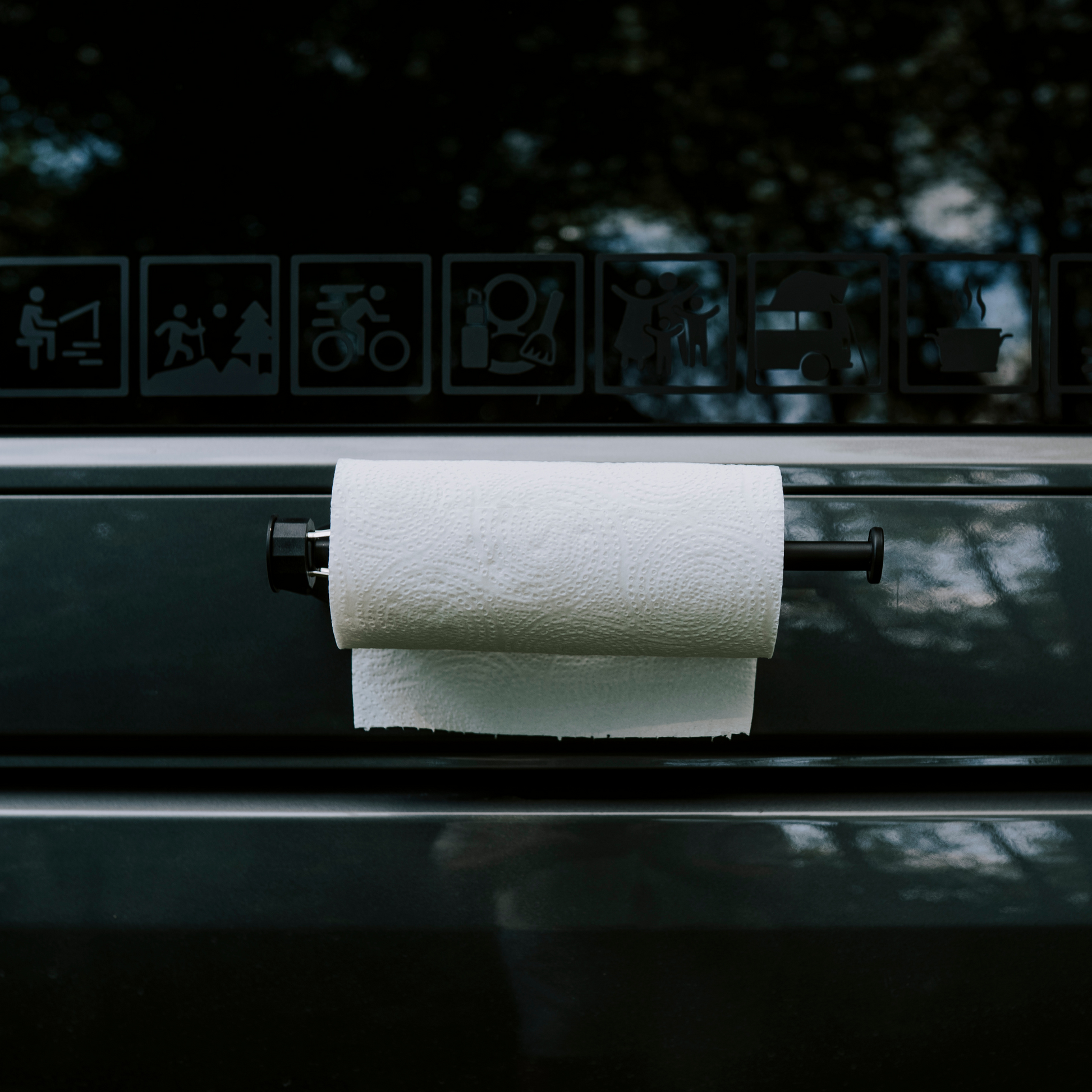 The Campnetic kitchen roll holder is equipped with strong magnets that adhere to the outside of your van. The magnets are rubberized to prevent scratching your van's paint. This allows you to flexibly attach and remove the holder anywhere on your van, depending on where you need it.