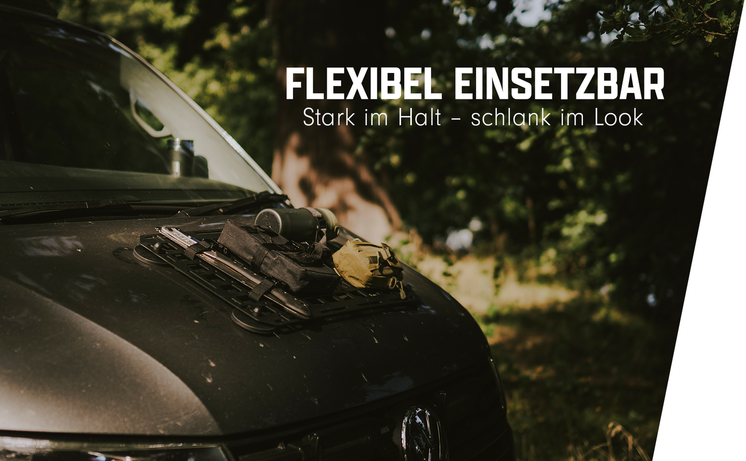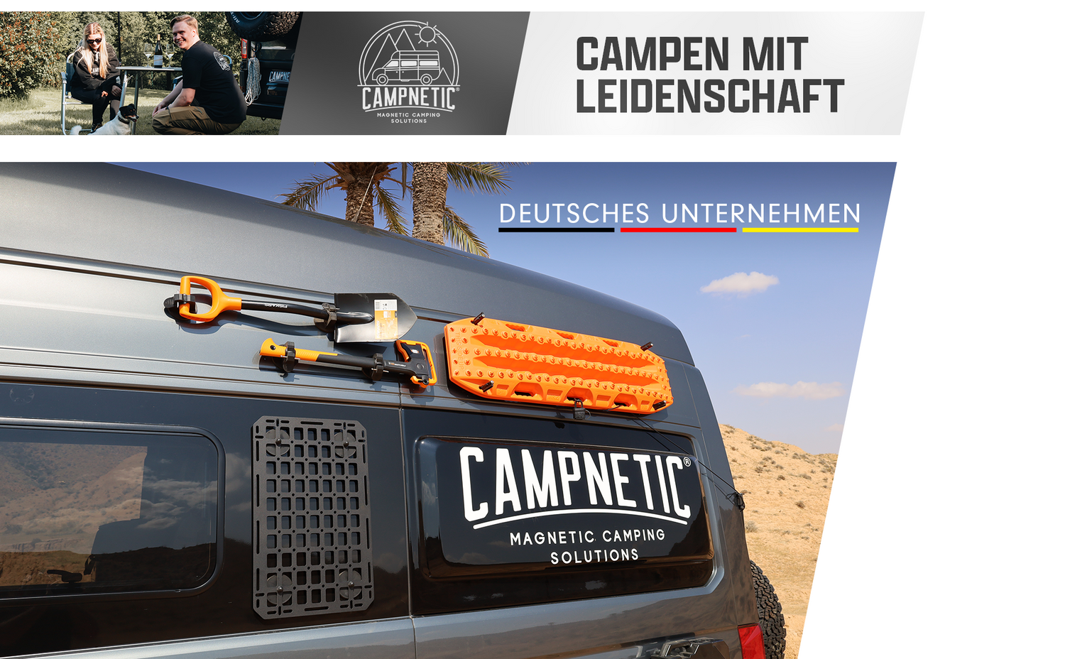 Our magnetic solutions are deliberately oversized – we rely on extra-strong magnets with extremely high adhesive force. This keeps your gear securely in place, no matter the conditions. Quality you can rely on – for maximum stability when camping, overlanding, and outdoor use!