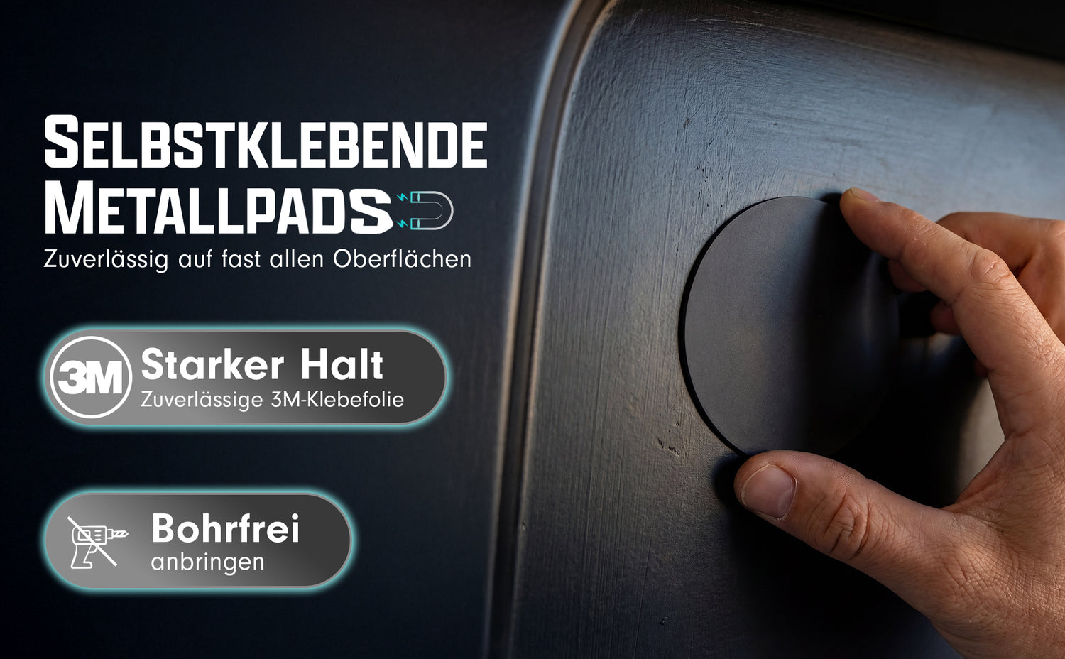 Die Metallpads halten nur auf glatten Oberflächen. Bitte achte vor dem Anbringen darauf, dass die Oberfläche fettfrei, trocken und sauber ist.