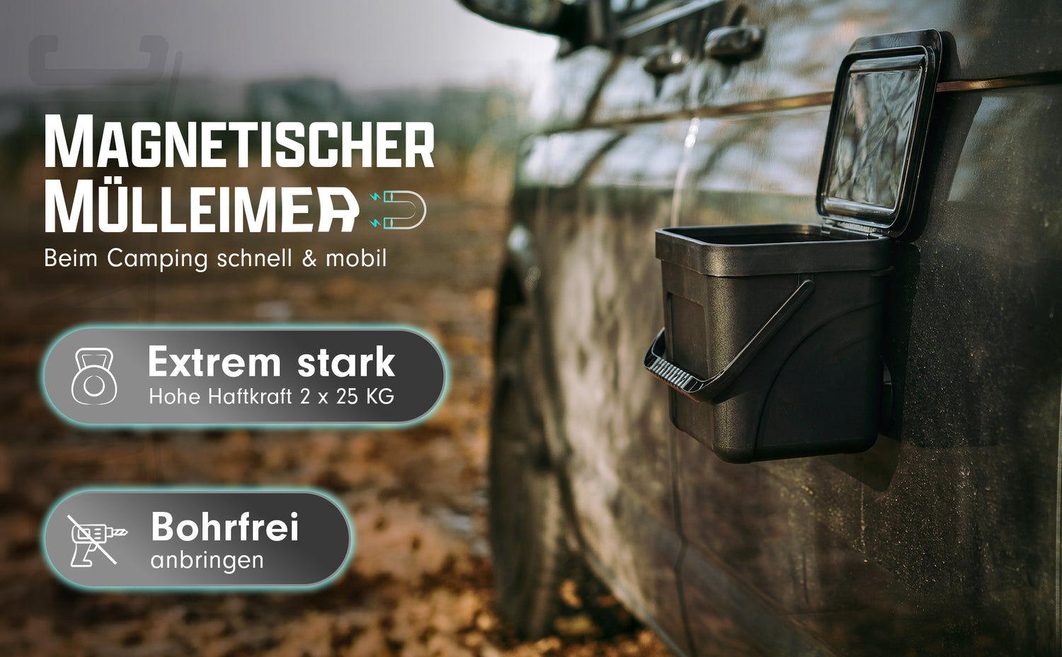 Magnetischer Camping Mülleimer von Campnetic – minimaler Aufwand, maximale Ordnung.