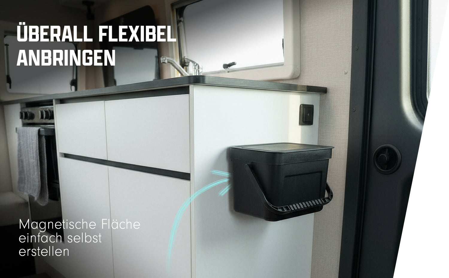 Der magnetische Camping Mülleiner ist ideal für Camper, Vans, Kastenwagen und Wohnmobile – perfekt für Sprinter, Ducato, Crafter und alle, die unterwegs Wert auf Ordnung und Komfort legen.
