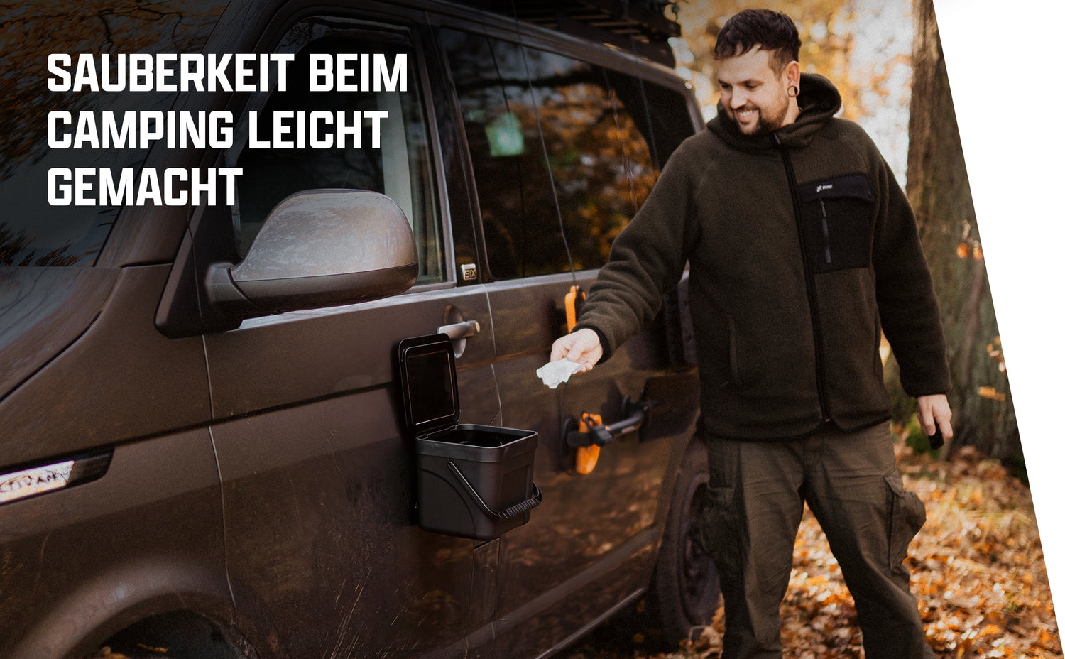 Stylish und Stark. Unser neuer Camping Mülleimer ist genau das, was in deinem Camper, Van oder Wohnmobil noch gefehlt hat.