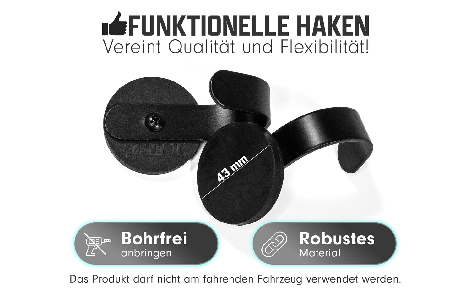 Du suchst nach einer einfachen und praktischen Möglichkeit, deine Sachen an und in deinem Van aufzuhängen? Dann sind die Campnetic Haken genau das Richtige für dich!