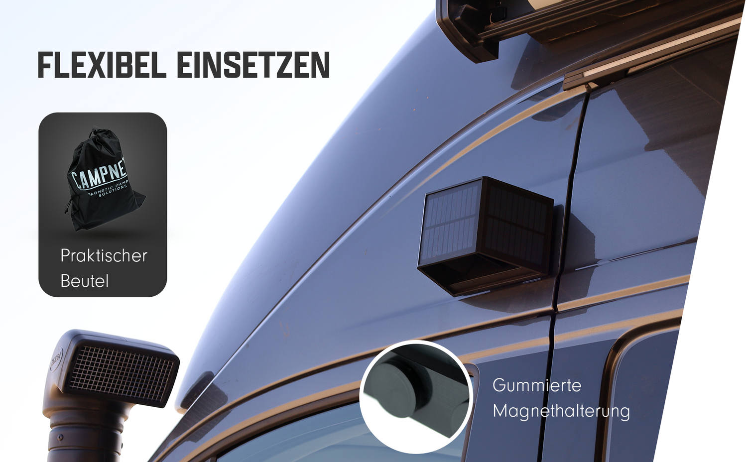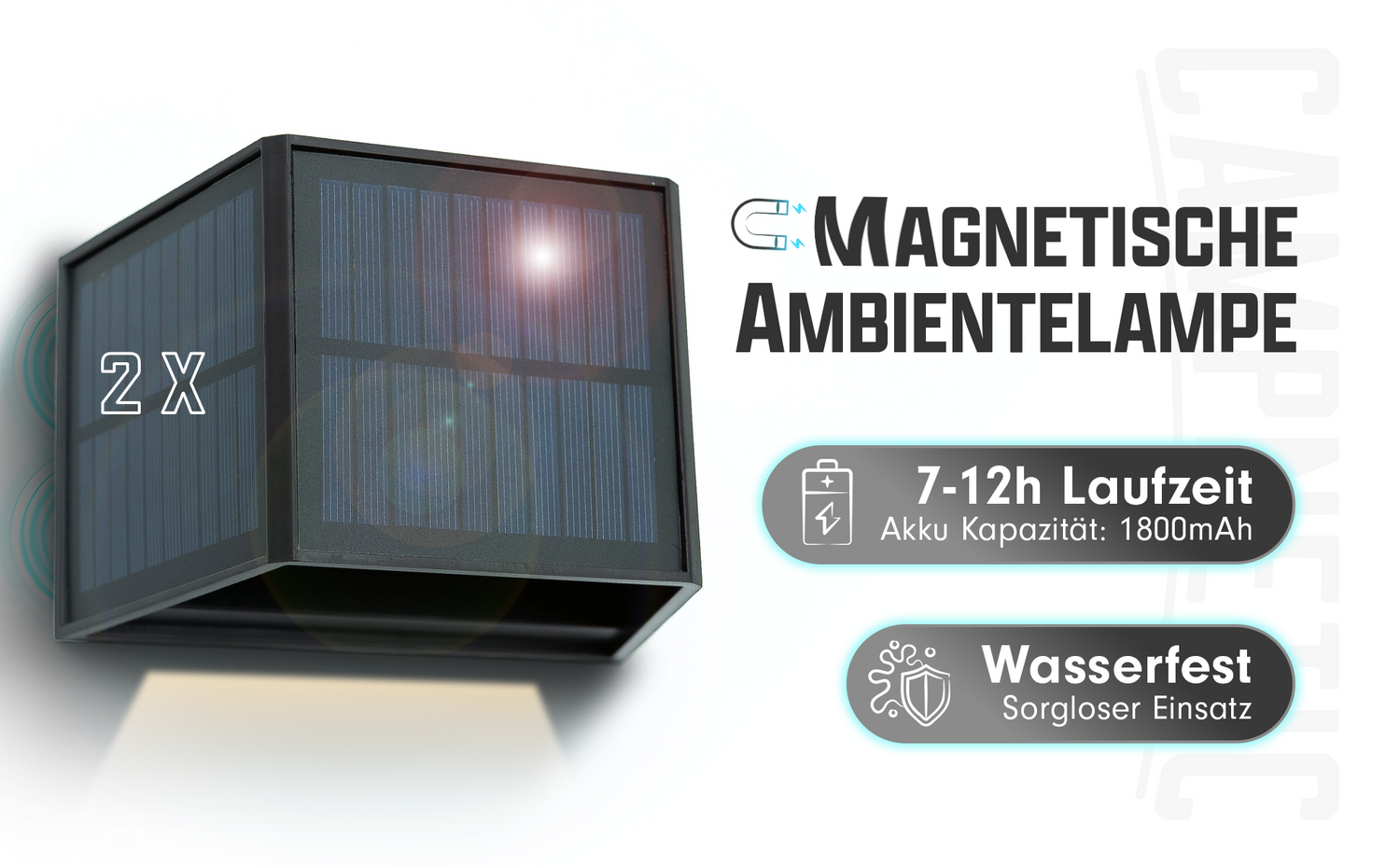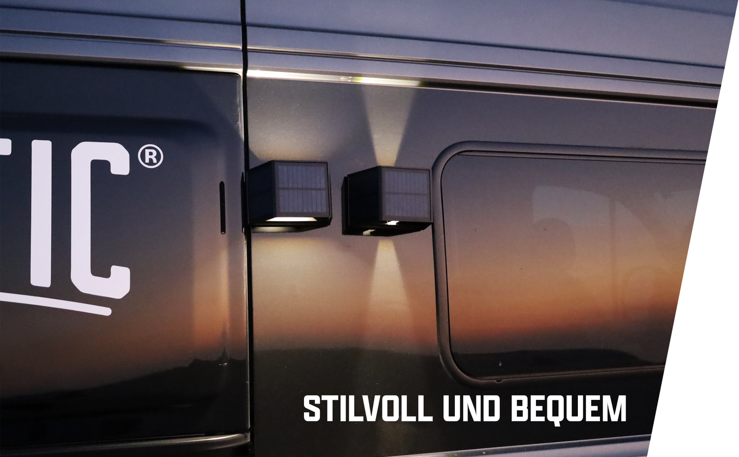 Verwandle deinen Stellplatz Garten oder Campervan in eine stilvolle Wohlfühl Oase mit dem hochwertigen LED Solar Ambientelicht mit Magnethalterung.