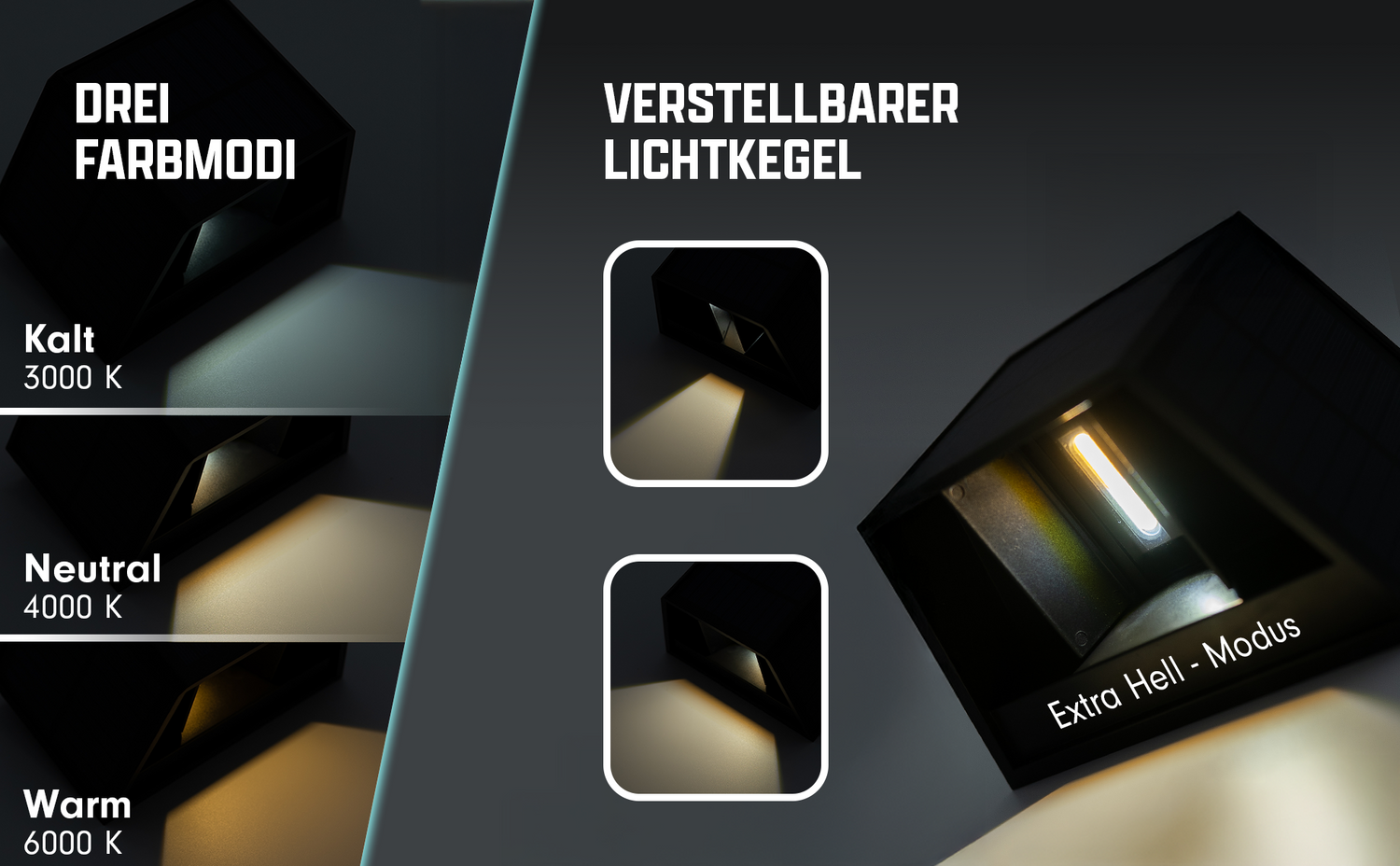 - Verstellbarer Lichtkegel für gezielte Ausleuchtung
