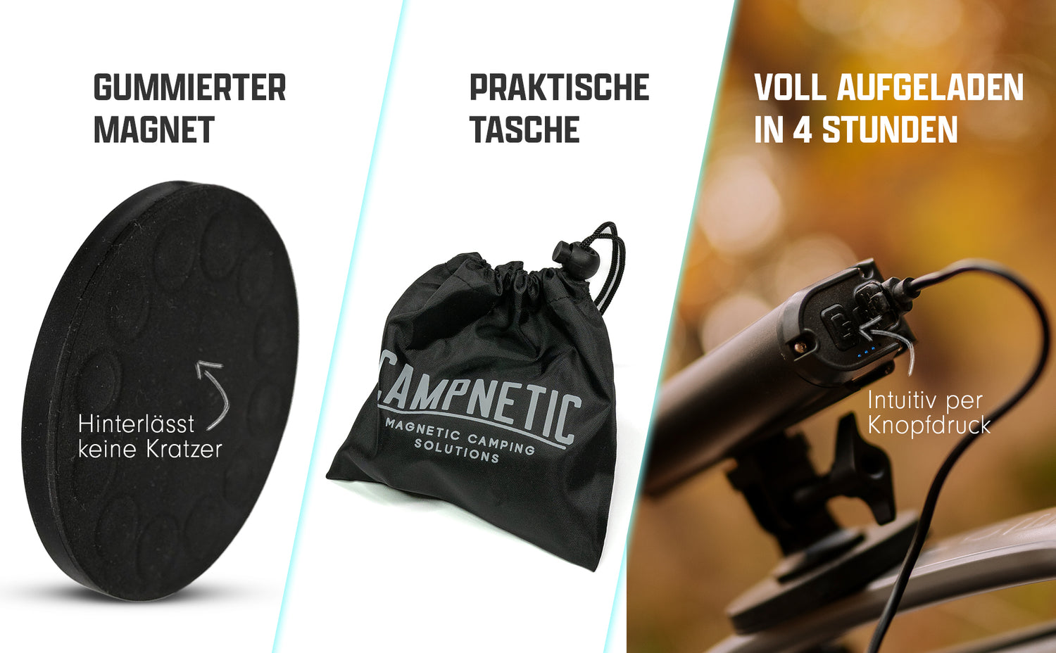 Viele unserer Campinggadgets, die nicht während der Fahrt am Fahrzeug bleiben, kommen mit einem praktischen Transportbeutel von Campnetic. Wasserdicht, staubdicht und robust – für einfaches Verstauen und sicheren Transport.