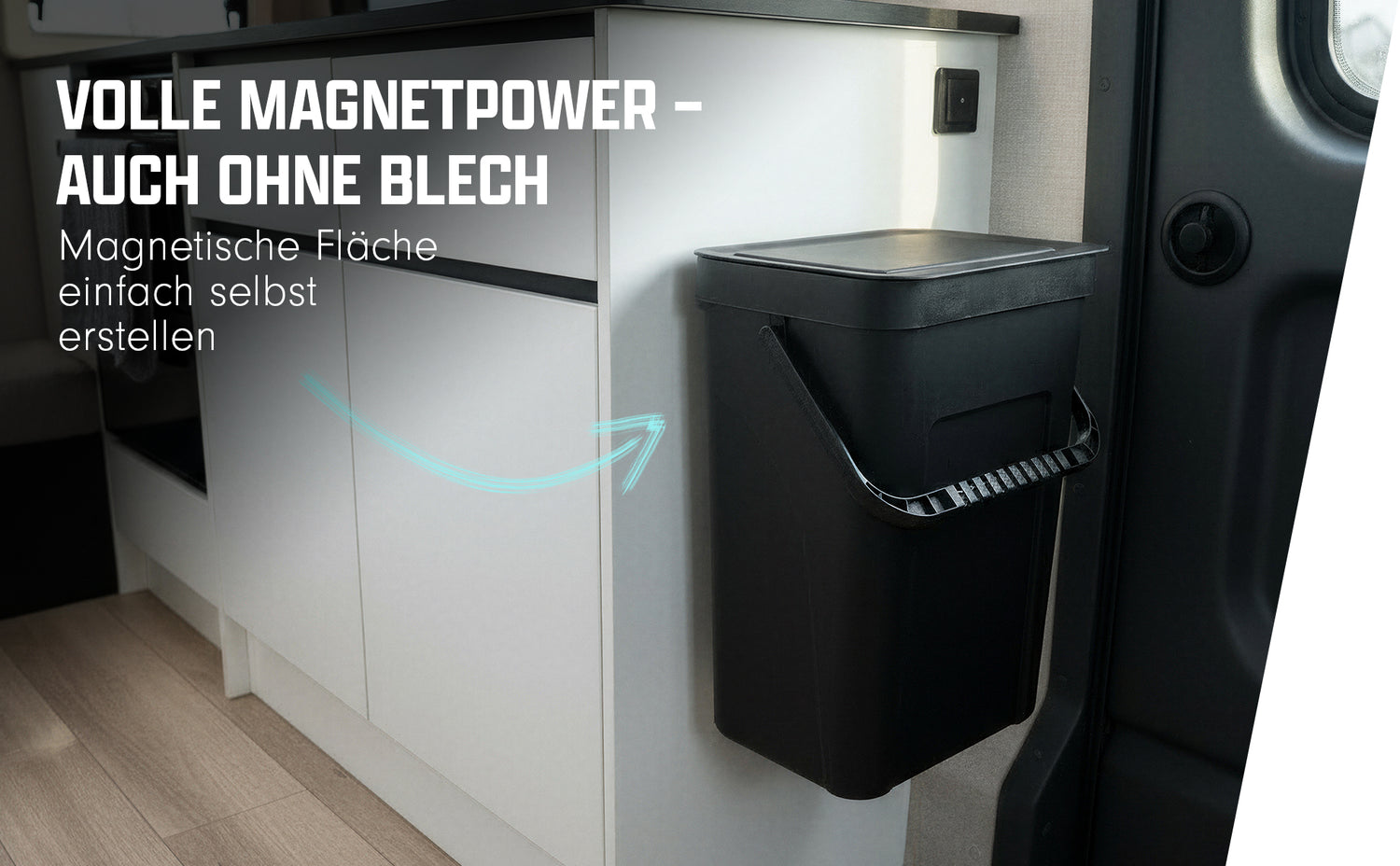 Die selbstklebenden Metallpads erweitern dein magnetisches Setup genau dorthin, wo klassisches Blech fehlt – egal ob im Wohnmobil, Wohnwagen, Kastenwagen oder Camperausbau. Sie sind ideal für den Innen- und Außeneinsatz geeignet und ermöglichen dir maximale Flexibilität – sicher, sauber und ganz ohne Bohren