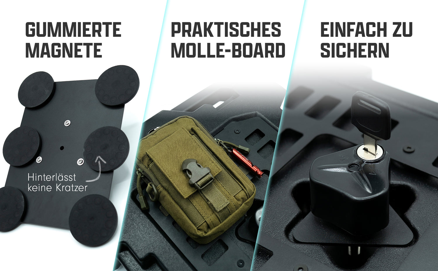 Unsere Magnetlösungen sind bewusst überdimensioniert – denn wir setzen auf extra starke Magnete mit extrem hoher Haftkraft. So bleiben deine Ausrüstungsgegenstände sicher an Ort und Stelle, egal unter welchen Bedingungen. Qualität, auf die du dich verlassen kannst – für maximale Stabilität beim Campen, Overlanding und Outdoor-Einsatz!